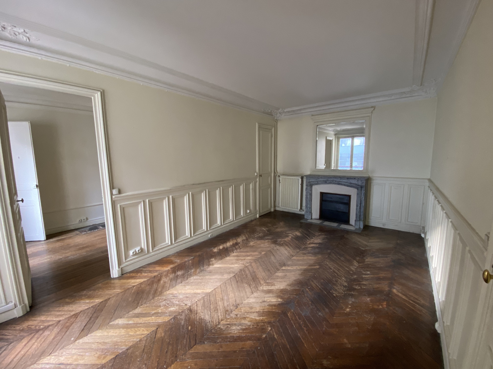 Travaux à prévoir. Belle hauteur sous plafond, parquets, moulures, cheminées, lumière, calme. Deux caves complètent le bien.